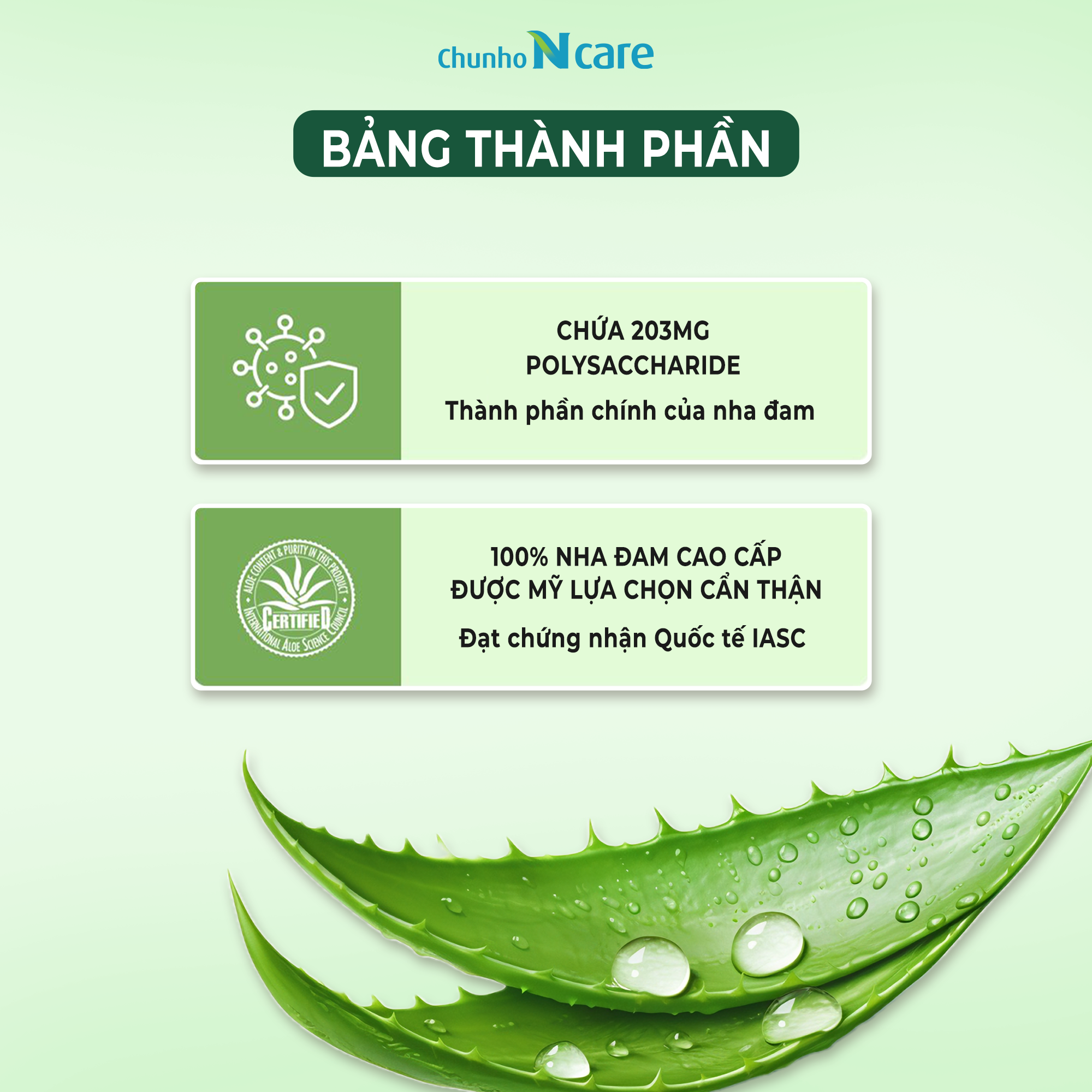 🔹 100% Lô hội từ Mỹ: Sử dụng lô hội vera 100% từ Mỹ được chứng nhận bởi Hiệp hội Tiêu chuẩn Lô hội Quốc tế.
